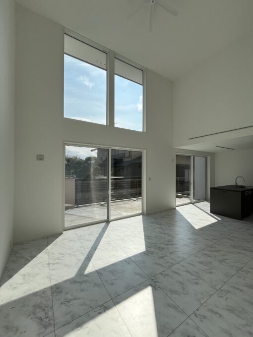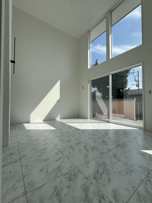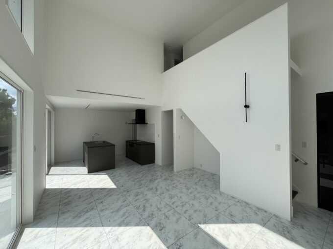 内装も同様に真っ白が基本、床の大理石調の仕上げもすべてビアンコ仕様。