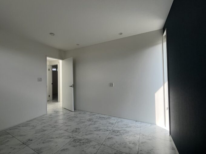 壁も天井も真っ白(1室のアクセントウォールを除きすべて)と、