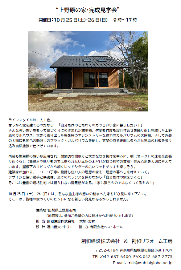 創和・ガルハウス ”上野原の家”完成見学会 開催!
