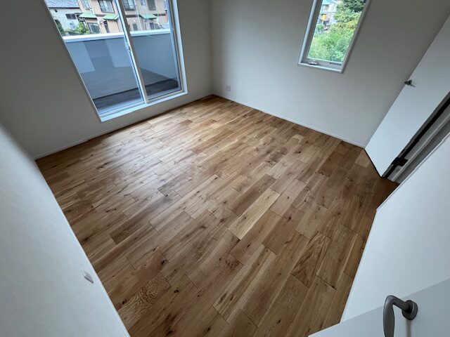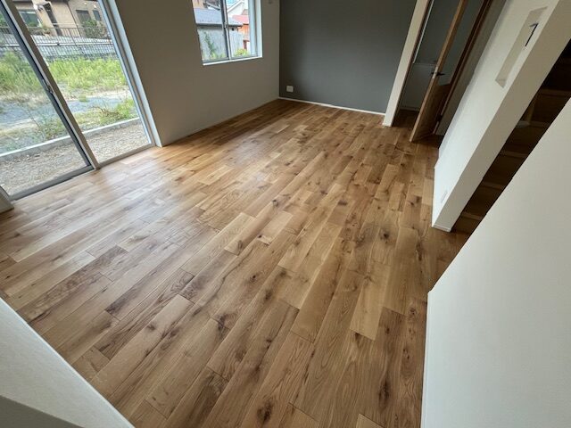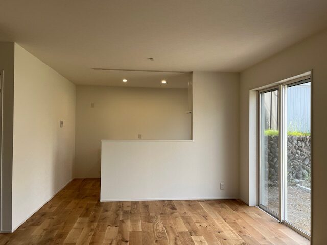 巾木も小さく、廻り縁も排除。スッキリとした空間にしていきました。