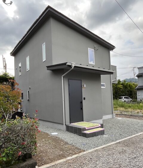 で始まりました。外も中もシンプルなグレー系の住まい。