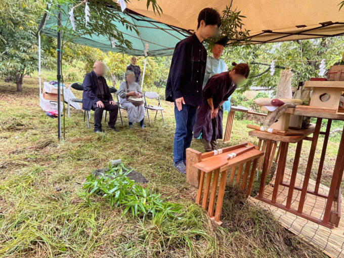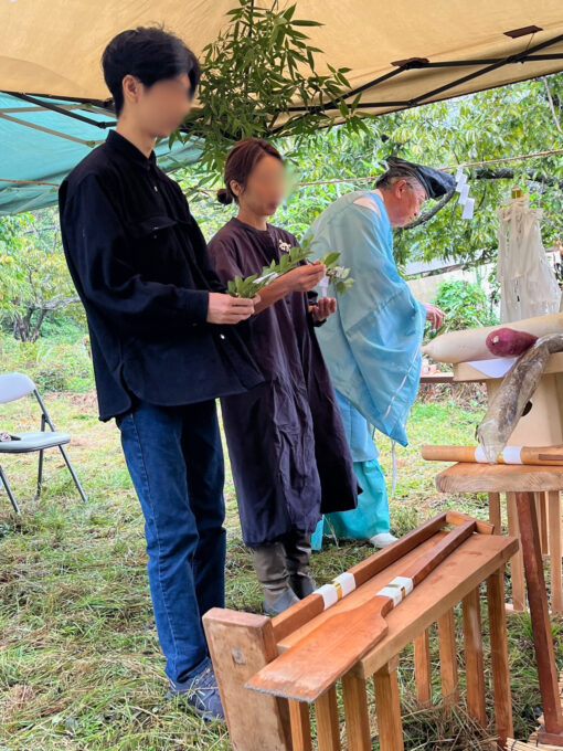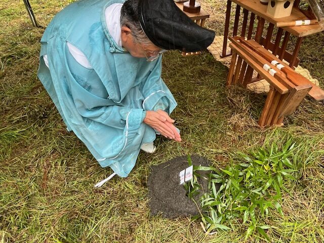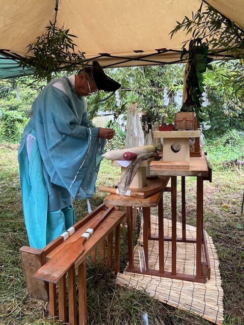 朝からテントを張り準備。上野原の神主さん(鈴木先生)に