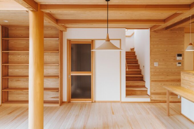 ほぼ上小と言える地産地消の無垢材とシラス壁・漆喰などの自然な素材が