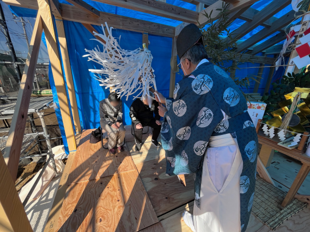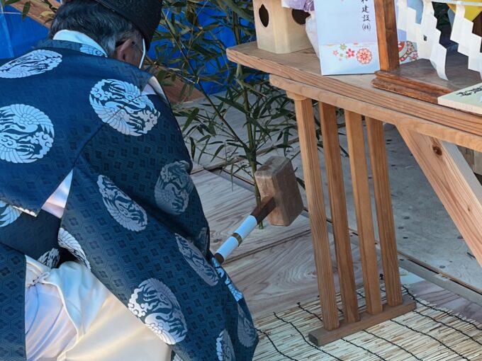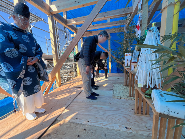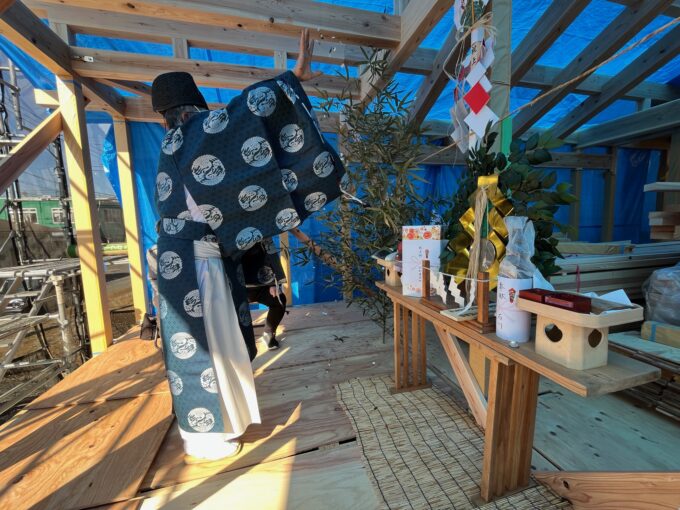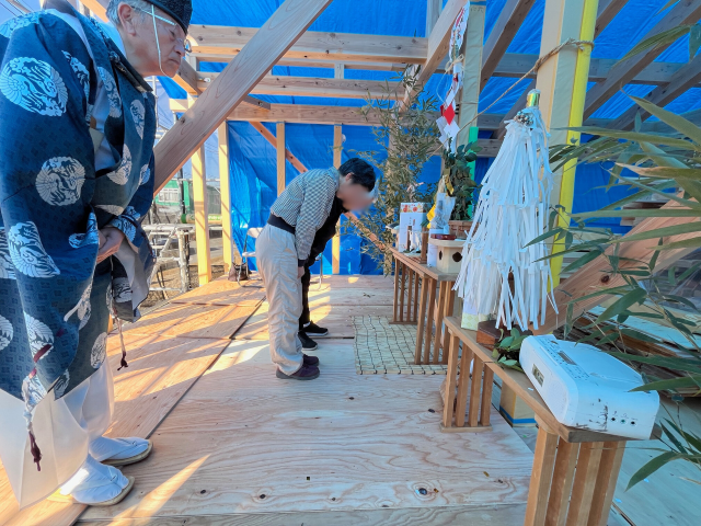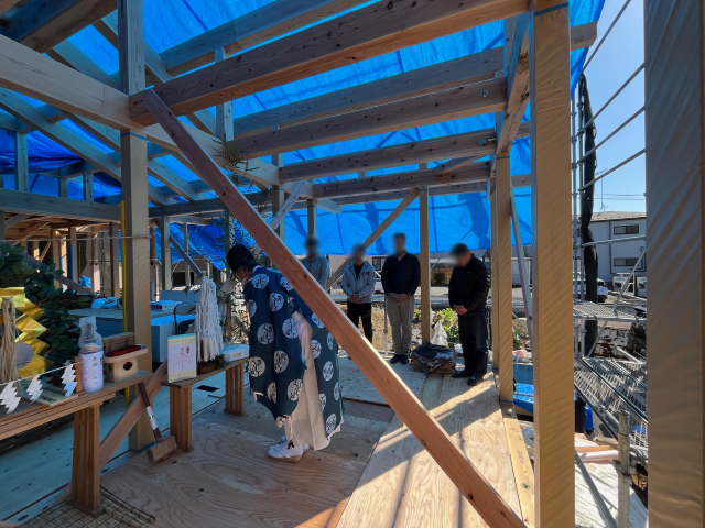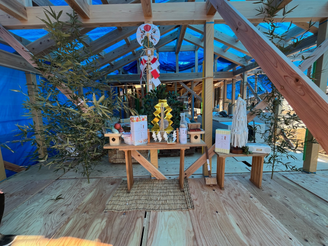 最後の写真は、数日後に開催した上棟式の様子です。完成の暁には、