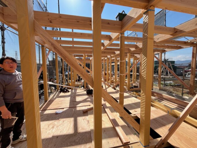 創和建設からは、現場監督の大塚、木組み大好き外崎棟梁が腕を振るいます。